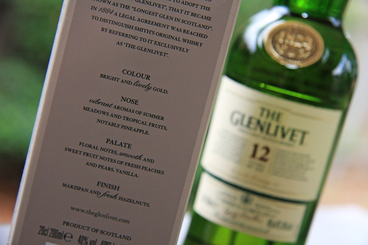 Realising I didn’t seem to have anything that met the criteria that well, I tracked down this little 200ml (20cl) bottle of The Glenlivet 12 year old. There happened to be a couple drams worth left after I’d put the kits together, so I thought I’d review it!