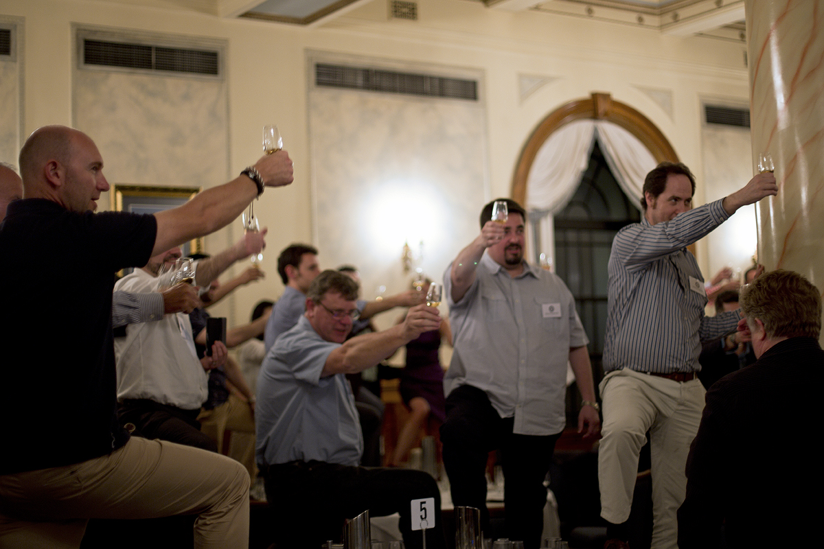 It was at this point of the night where Jim invited everyone to get up and join him in a Highland Toast. One foot on the table, one on your chair, glass charged in your right hand.